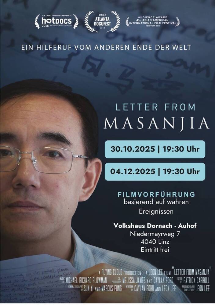 Ein Dokumentarfilm über die Verfolgung von Falun Dafa wurde am 30.10. 2025 in Linz gezeigt: Der Praktizierende Sun Yi berichtet, wie er in China seinen Mitbürgern die Wahrheit über Falun Dafa erklärte, daraufhin verfolgt und in ein Zwangsarbeitslager eingewiesen wurde. Er erlebte Folter, die Menschen zwingen sollte, das Praktizieren von Falun Dafa aufzugeben. Jedoch gelang es ihm, über diese Missstände unter größter Gefahr Briefe zu schreiben. Er versteckte sie in den dort erzeugten Halloween-Dekorationen, die ins Ausland exportiert wurden. Einen davon fand eine Amerikanerin, sie informierte sofort die Medien.