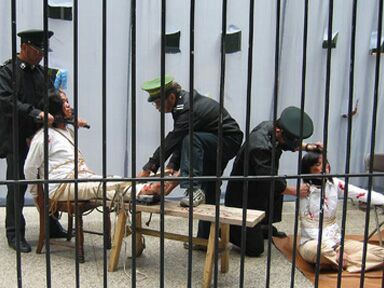 "Foltermethoden, die Falun Gong Praktizierende in China ertragen müssen, wurden von Montag bis Mittwoch am "Federal Plaza" in Chicago dargestellt. [...] Schauspieler in Kostümen, (zeigten) die derzeitigen Foltermethoden, so wie sie in China heutzutage angewandt werden. Es wurden nur wenige als Beispiele gezeigt. Tatsächlich werden mehr als 100 verschiedene Foltermethoden an Falun Gong Praktizierenden angewandt, ...