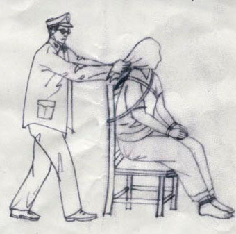 Die Polizei zieht über den Kopf des Praktizierenden einen Plastiksack, so dass dieser Atemnot erleidet und ihm schwindelig wird. Oft wird zusätzlich ein Arm des Praktizierenden über die Schulter auf den Rücken der andere Arm von unten auf den Rücken, gezogen, und die Hände werden zusammengebunden. Dies löst sehr große Schmerzen aus.