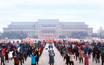 Historisches Foto: Morgendliche Übungsgruppe in Chanchun 1998