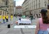 Auch in Wien trafen zahlreiche Falun-Dafa-Praktizierende aus ganz Österreich zusammen, um den Jahrestag gebührend zu begehen. Die Kundgebung wurde auch musikalisch umrahmt. Zahlreiche Passanten unterschrieben Petitionen gegen die unrechtmäßige Verfolgung und erkundigten sich über die Meditations-praxis und ihre Wirksamkeit.
